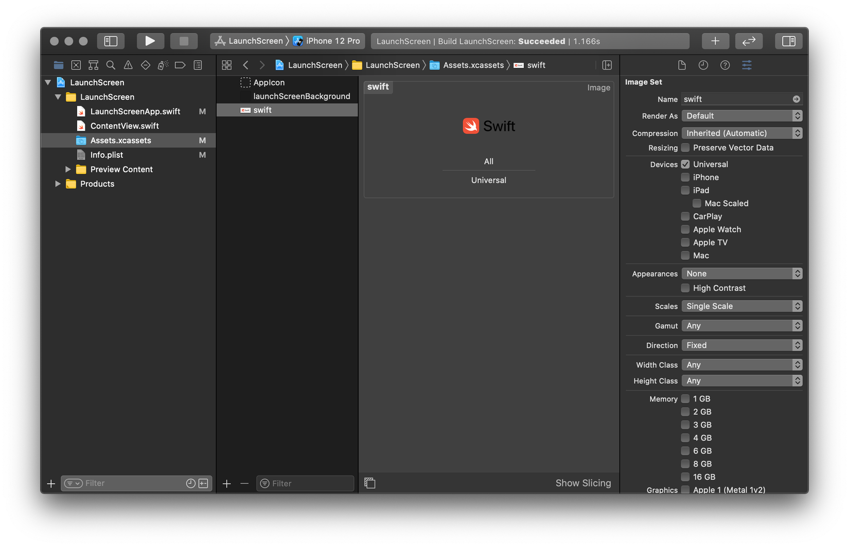Giả sử chúng ta có logo Swift trong Assets catalog là tệp SVG. Trong Xcode 12, cuổi cùng thì Apple cũng support cho SVG file (y) :