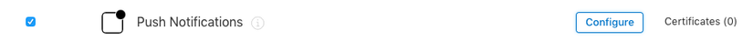 - Lựa chọn configure ở mục push notification bạn sẽ nhìn thấy bảng sau: