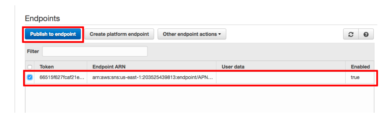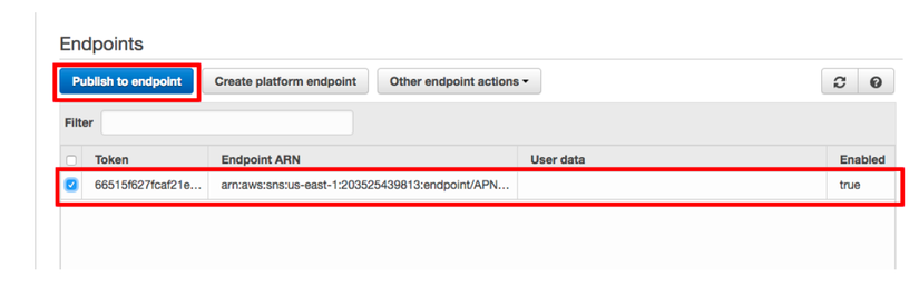Kết nối iphone của bạn và cài đặt ứng dụng thông qua Xcode Nếu quá trình hoàn tất bạn có thể thấy new endpoit ở AWS Dashboard -> SNS -> Applications -> YourApplication. Bây giờ hãy chọn Publish to Endpoint và send notification to your phone.
