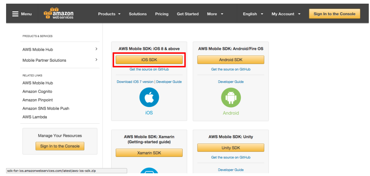 Truy cập trang AWS SDK dành cho iOS tại đây và tải xuống SDK