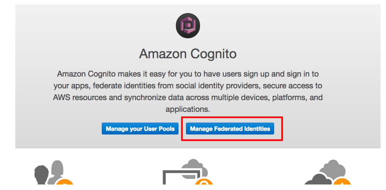 - Manage federated identities: bấm vào nút ' Manage Federated Identities ' để mở identity pools của bạn