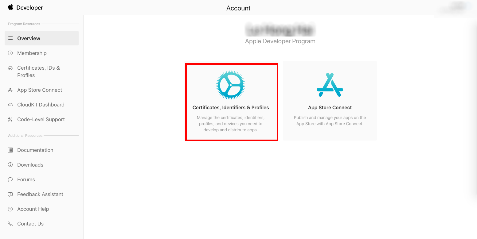 - Đăng nhập Apple developer account và lựa chọn Certificates, Identifiers and Profiles