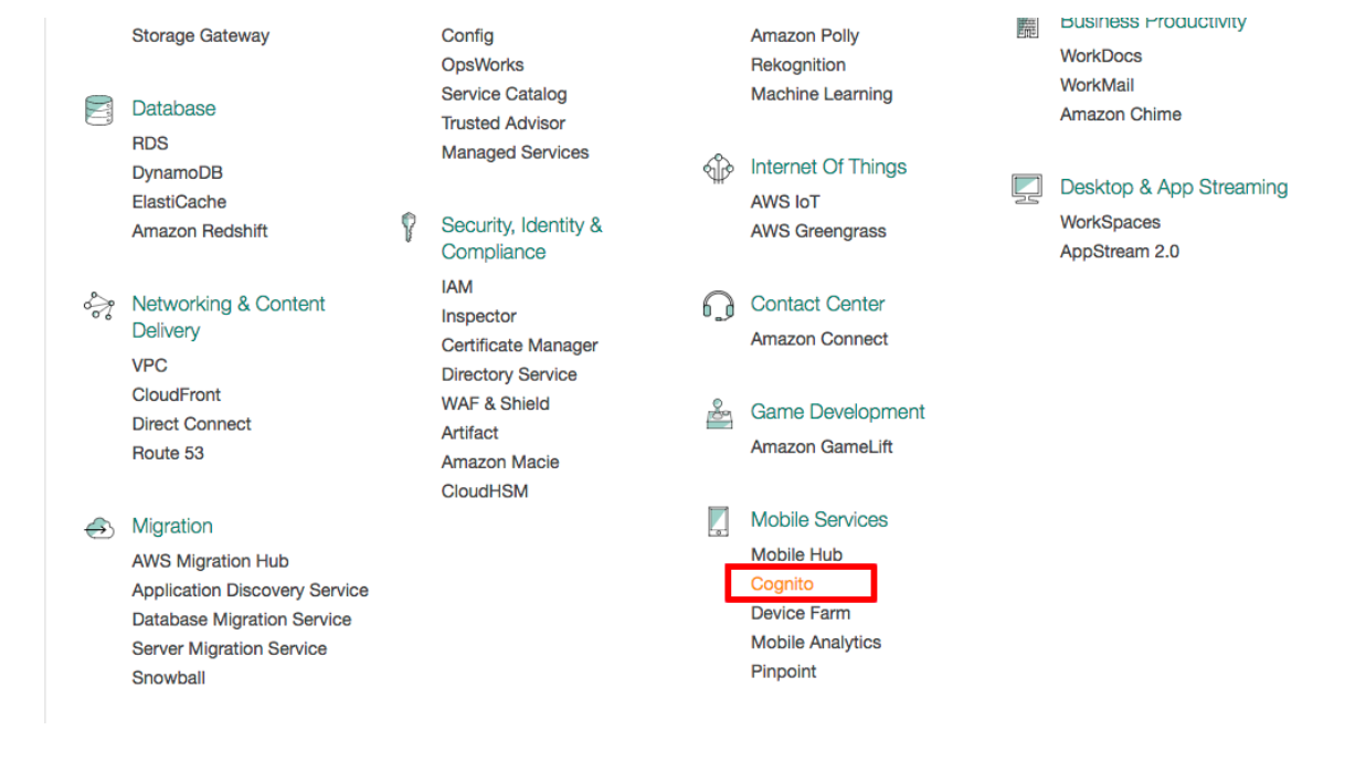 - Truy cập Cognito: truy cập trang tổng quan AWS chính và mở Cognito