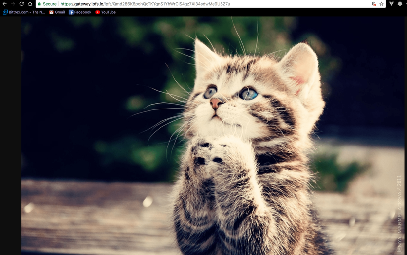 Vào lại thư mục go-ipfs các bạn có thể thấy đã tải về thành công file cat.jpg khi nãy chúng ta upload lên IPFS rồi đó.