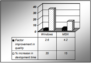 Besides, the authors also made two others case studies performed at Microsoft Corporation using TDD. In two divisions inside Microsoft, Windows and MSN respectively. The results showed that the system developed using TDD had a great significant improvement in quality, higher than at least two time compare to non-using TDD system. However, it took 15-35% increase in the overall development time. (Figure 1).