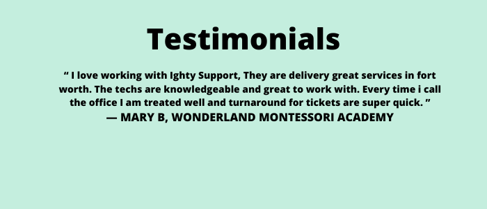 When it Comes to Fort Worth IT Support Services and Customer Services no other better than us. We are super quick, responsive, Proactive, extraordinary, 24*7 Customer Services provide innovative technology solutions and complete work exactly as you want at the time. And also we provide some additional technology services which you never get anywhere.