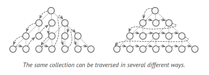 Điều này nghe có vẻ như là một công việc dễ dàng nếu bạn có một collection dựa trên trên một danh sách. Bạn chỉ cần lặp lại tất cả các phần tử. Nhưng làm thế nào để bạn tuần tự đi qua các phần tử của một cấu trúc dữ liệu phức tạp, với nhiều cách khác nhau.