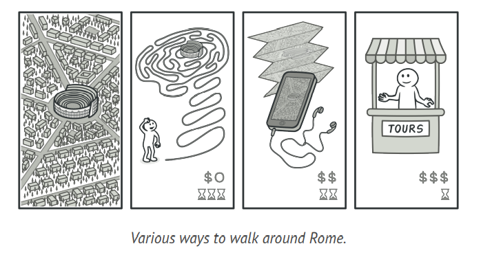 Một ví dụ thực tế, bạn có kế hoạch đến thăm Rome trong một vài ngày và thăm tất cả các danh lam thắng cảnh ở đây. Nhưng khi ở đó, bạn có thể lãng phí rất nhiều thời gian đi bộ lòng vòng, không thể tìm thấy những danh lam thắng cảnh đó.