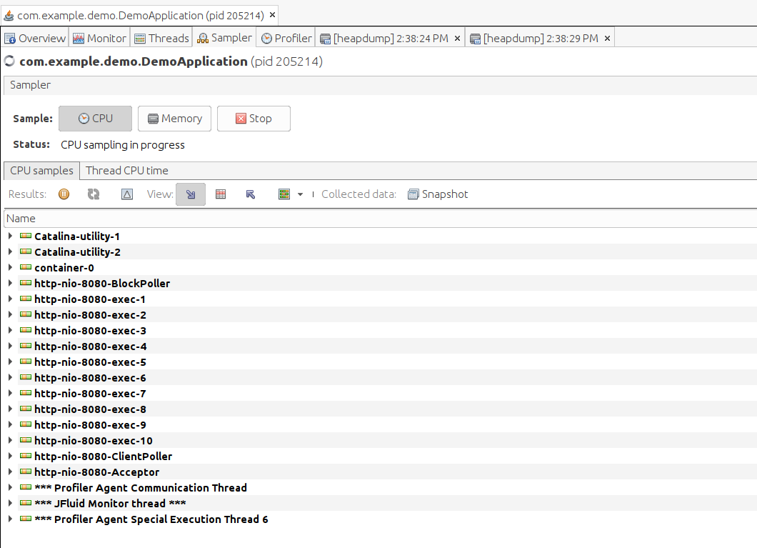 Giúp chúng ta lấy mẫu CPU hay Memory tại từng thời điểm, không cần thiết lưu ra file, có thể paused và refresh đến thời điểm hiện tại của cả CPU và Memory