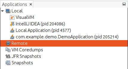 - Local: Là các ứng dụng chạy trên JVM ở máy local (máy chạy VisualVM).