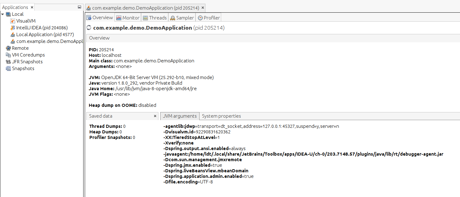 Có rất nhiều thông tin ở đây: PID, Host, Main class, Arguments...