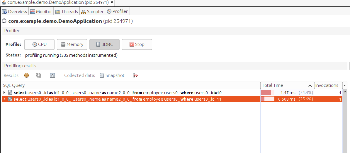 JDBC Profiler: Theo dõi các câu lệnh SQL được gọi Trong ứng dụng của mình, mình thực hiện 2 thao tác với databases