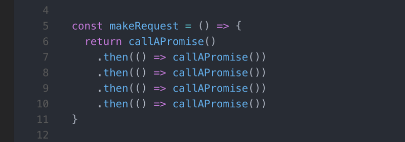 Khi phát triển trên môi trường local, điều này có vẻ không có quá nhiều tác dụng, nhưng trên môi trường production, nó tỏ ra rất có ích với error log. Khi đó bạn sẽ biết được error xảy ra trong makeRequest sẽ tốt hơn nhiều khi được báo rằng lỗi đén từ .then.then.then....