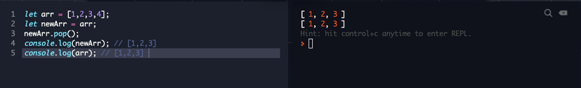 Tuy nhiên, việc copy dữ liệu như thế này sẽ gây ra refercence, nếu như chúng ta thay đổi dữ liệu của newArr thì nó cũng sẽ ảnh hưởng đến arr. Ví dụ như dưới đây: