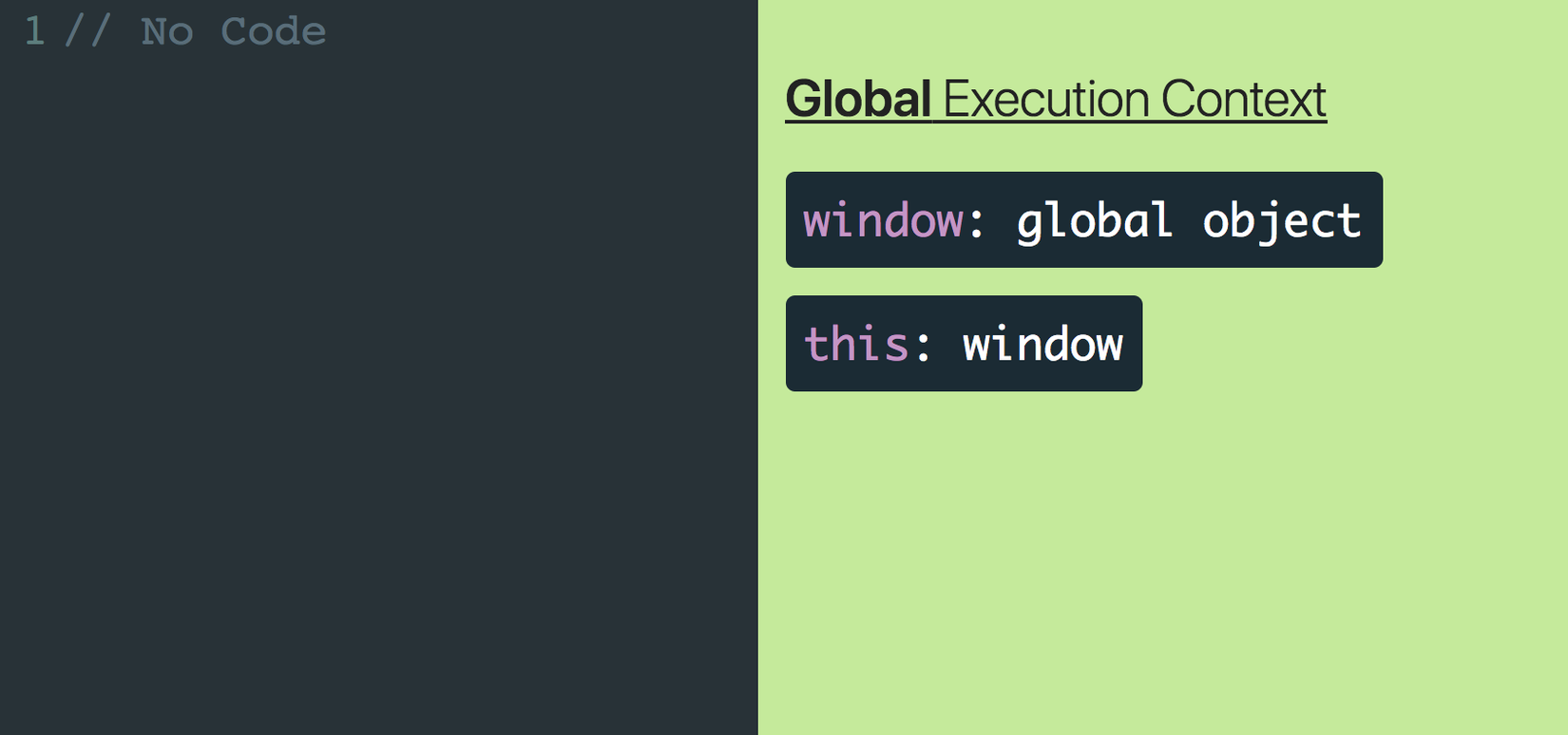 Đây là Execution Context mặc định hay có thể gọi là Base Execution Context, là những đoạn code không nằm trong bất cứ function nào.