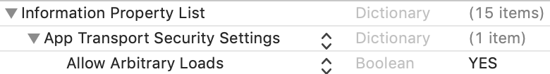 Lưu ý rằng bạn chỉ có thể load các URL được bảo mật theo mặc định. Bạn phải add "App Transport Security Settings" vào file Info.plist, và add key "Allow Arbitrary Loads" vào phía trong với value là "YES":