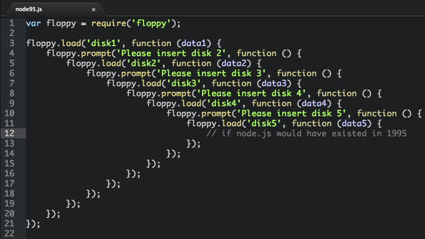 Hàm callback rất dễ hiểu và dễ sử dụng, tuy nhiên, để thực hiện các đoạn code phức tạp thì callback lại cho thấy điểm yếu của mình, đó là callback hell, nó sẽ làm đoạn code của chúng ta rất xấu, khó đọc và khó bảo trì. Trong một thời gian rất dài, chúng ta phải dựa vào callbacks để làm việc với các đoạn code bất đồng bộ trong javascript. Kết quả là, rất nhiều người trong chúng ta đã có những trải nghiệm kinh khủng khi phải đối mặt với các hàm trông như thế này :