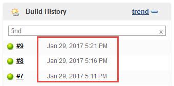 Vì chúng ta đang kích hoạt bản build cứ sau 5 phút, bạn có thể thấy các jobs đang chạy cứ sau 5 phút (hiển thị trong hình dưới đây).