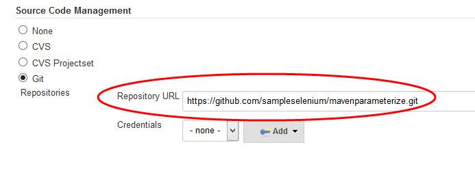 Trong ví dụ dưới đây, chúng ta sẽ configure plugin Git và gọi testng.xml bằng maven từ jenkins. Bạn có thể có các scripts/tests selenium của bạn được thêm vào testng.xml. Bạn cũng có thể tham số hóa selenium tests của mình bằng Maven-Testng