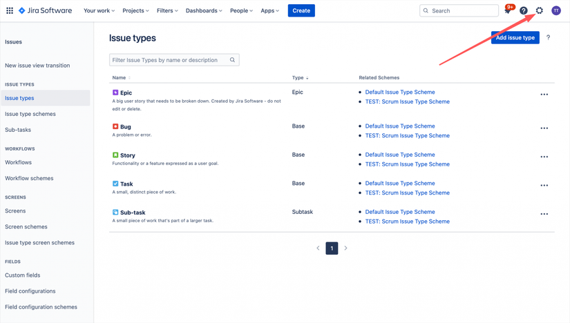 - Chọn biểu tượng bánh răng, sau đó chọn Issues, sau đó chọn Workflows ở thanh bên trái.