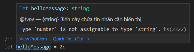 message = 2; // <-- Báo lỗi "Type 'number' is not assignable to type 'string'"