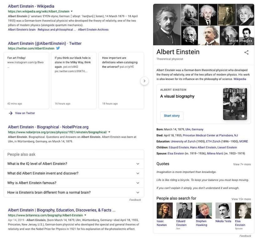 - Knowledge Graph cards: Cái này khó hơn một chút, vì bạn sẽ phải chứng minh trước tiên rằng bạn là người có thẩm quyền đối với một số nội dung nhất định. Sau khi bạn đã làm như vậy, Google có thể đưa dữ liệu của bạn vào Knowledge Graph cards.