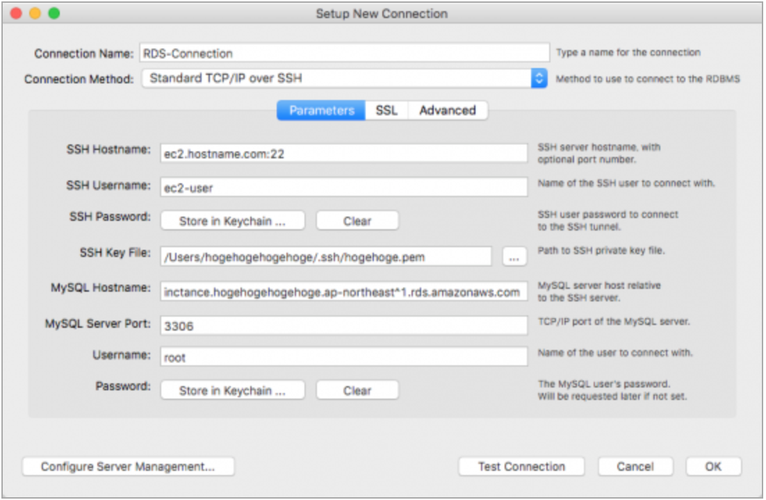 - SSH Key file: Đường dẫn tới .pem file ở bước 1