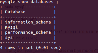 - tiếp theo đăng nhập bằng root bạn chạy lệnh