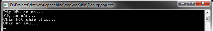 Kết quả thực thi của class Pig, Bird sau khi implement các method của interface.