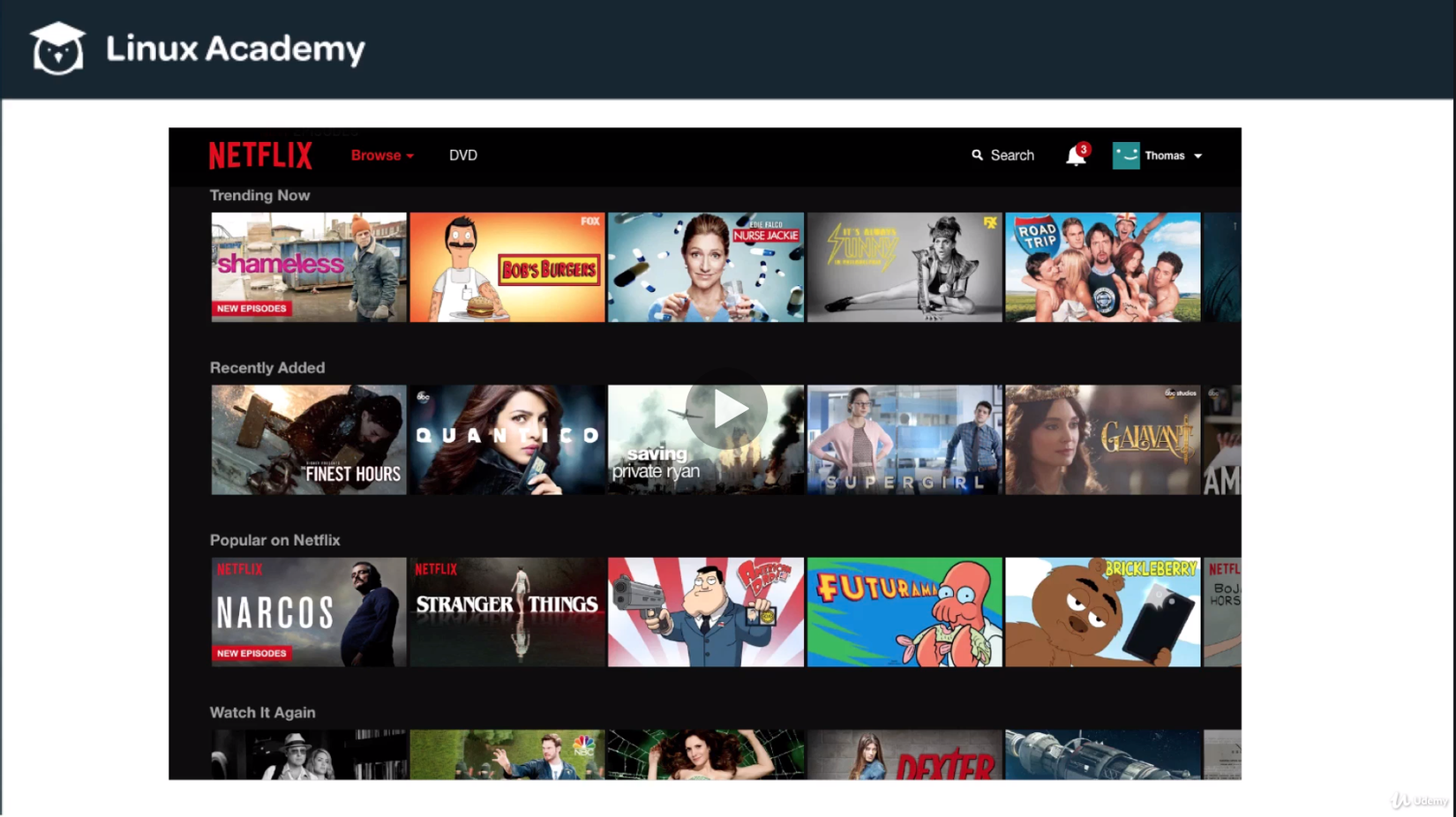 Sau khi bạn đăng nhập vào Netflix, sẽ có một danh sách các show hoặc các tập phim mà Netflix có. Đây cũng là một ứng dụng phổ biến của RDS hay các chương trình database nói chung: lưu trữ các danh sách.