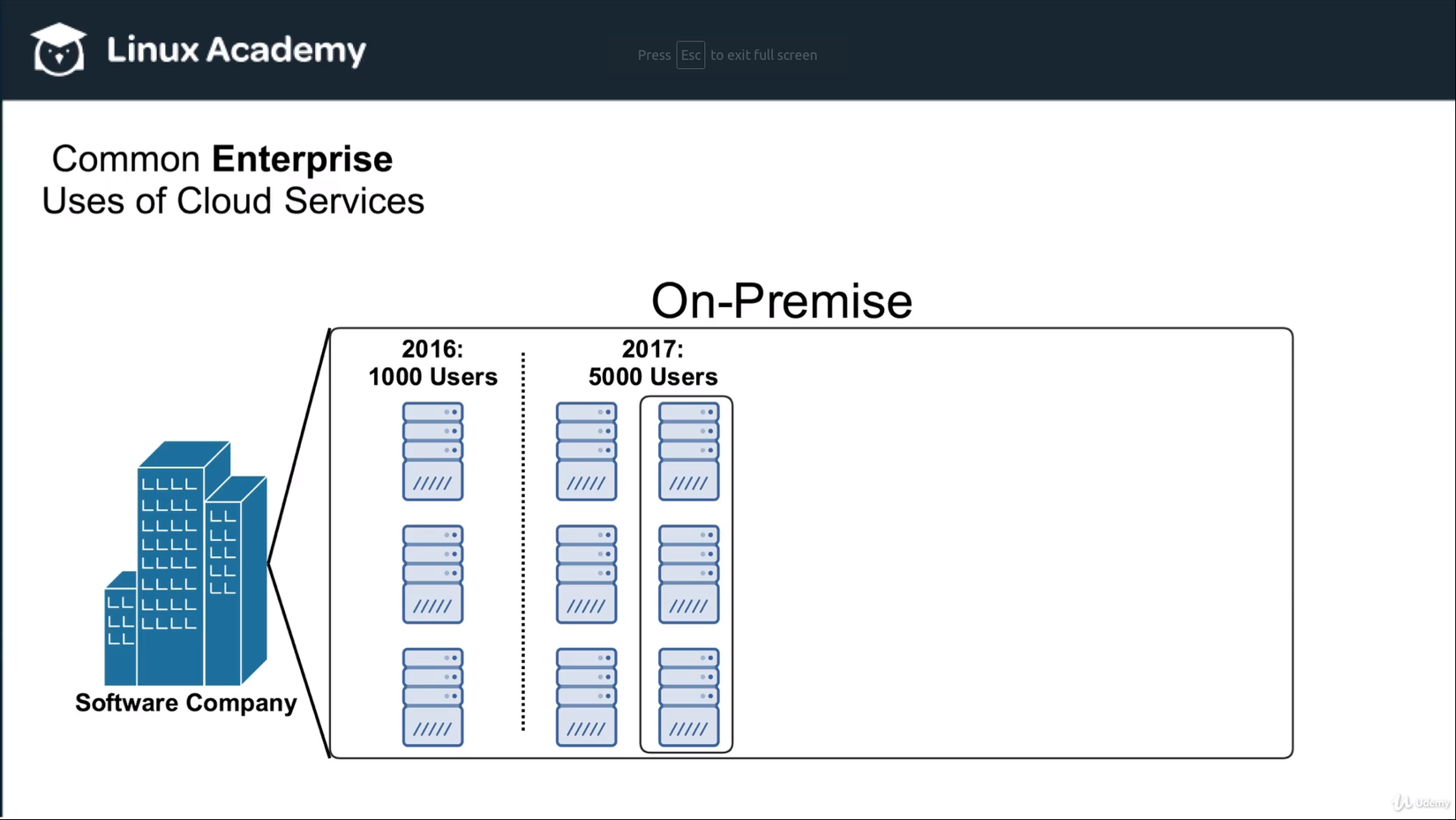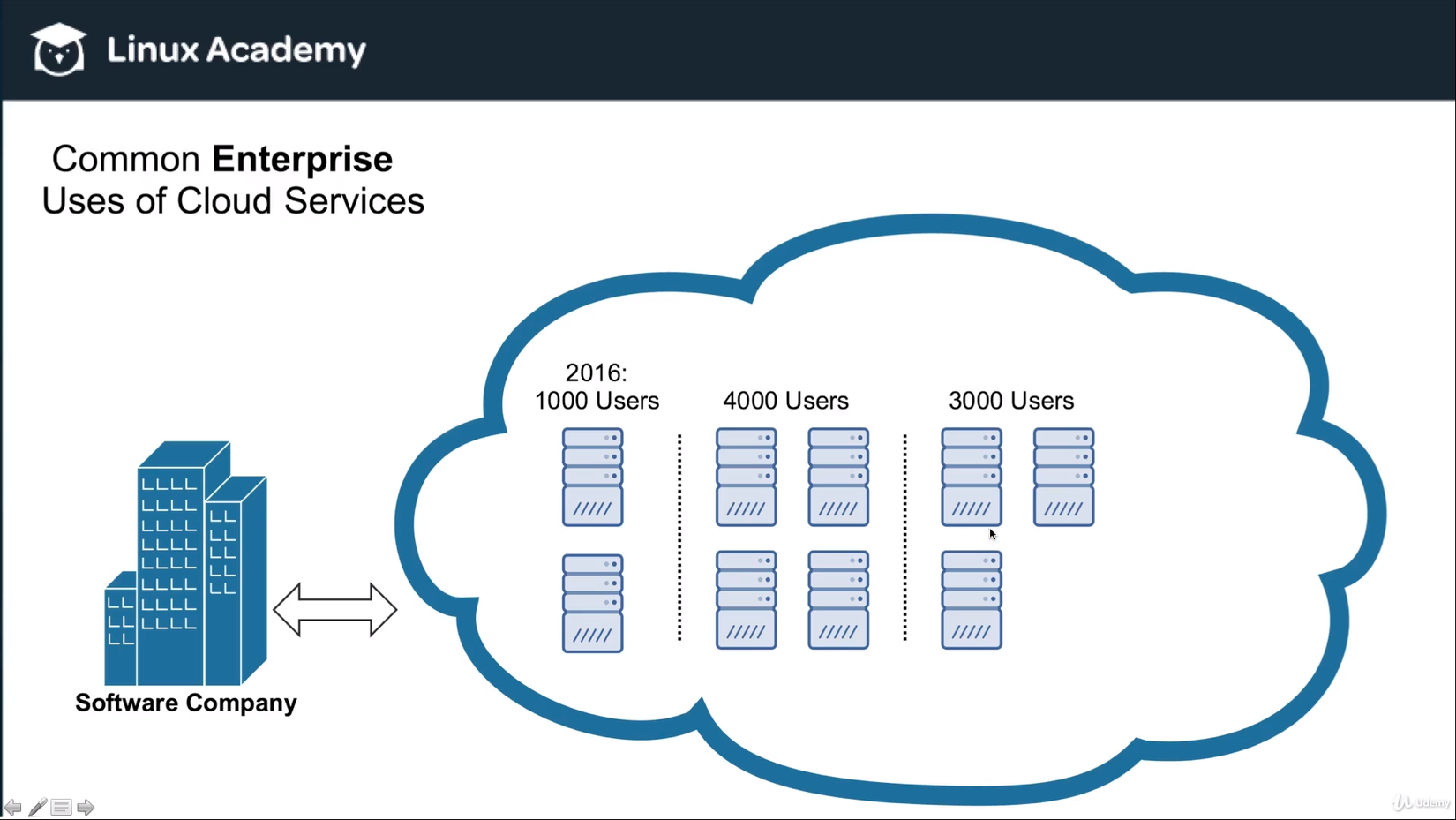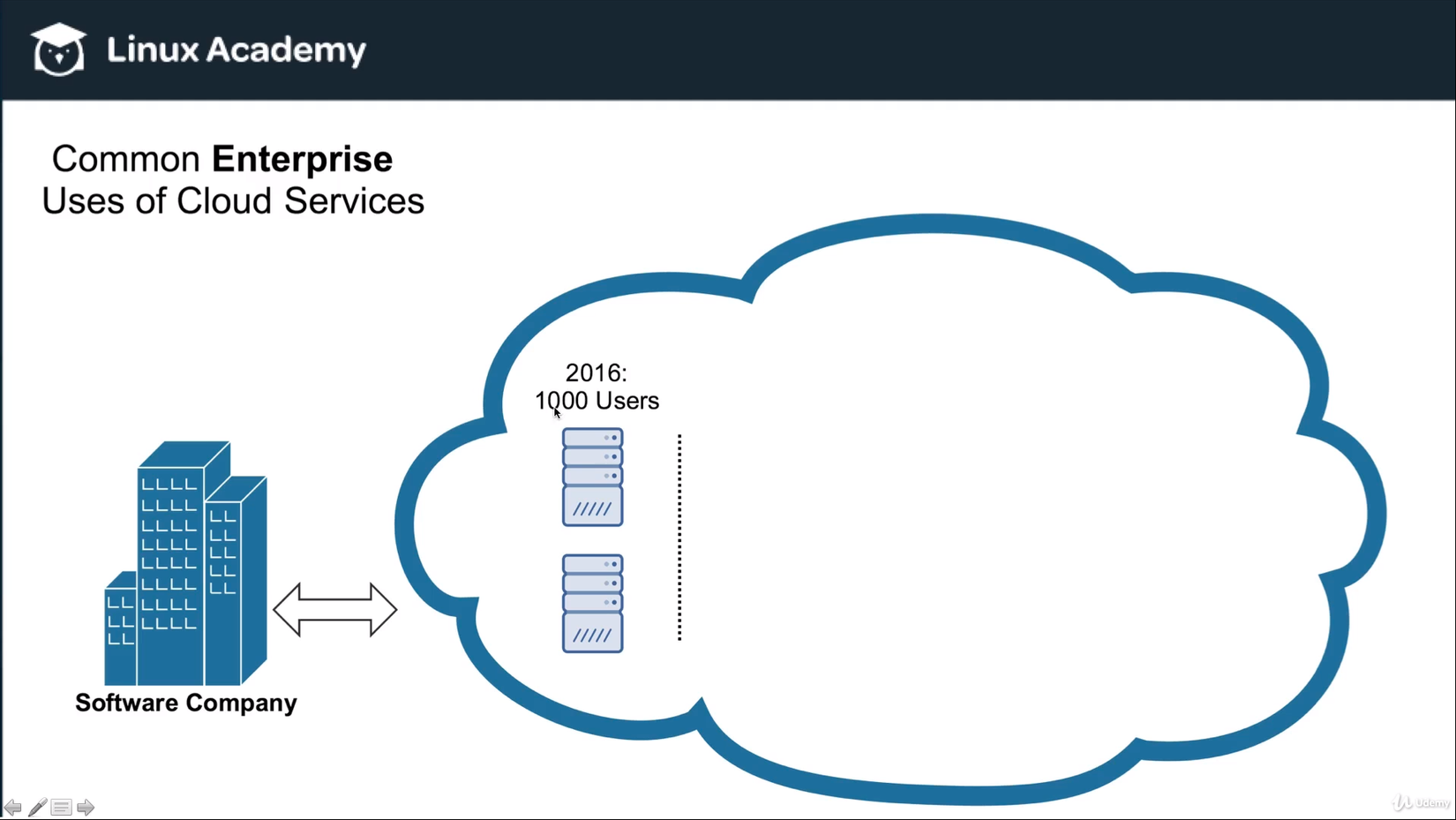 Vào năm 2016, công ty có 1000 user trên 2 Cloud server: