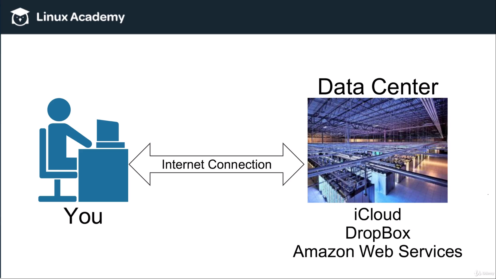 Qua hình trên bạn có thể thấy rằng, khi sử dụng iCloud, DropBox, AWS... để lưu trữ file, ảnh, tài liệu... thì không phải chúng được gửi đến một đám mây hay một chiếc hộp "ma thuật" nào đó, mà thực ra chúng được lưu trữ tại một trong các máy server (hay người ta còn gọi là "rack") trong một cái data center ở một nơi nào đó trên thế giới như trong hình trên.