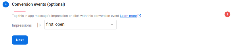 Trigger: Kích hoạt thông báo được hiện thị. Điều này có một số trường mặc định như app_exception, app_clear_data, first_open, app_start và bạn có thể thêm một số kích hoạt tùy chỉnh bằng cách sử dụng Firebase Anlytics.