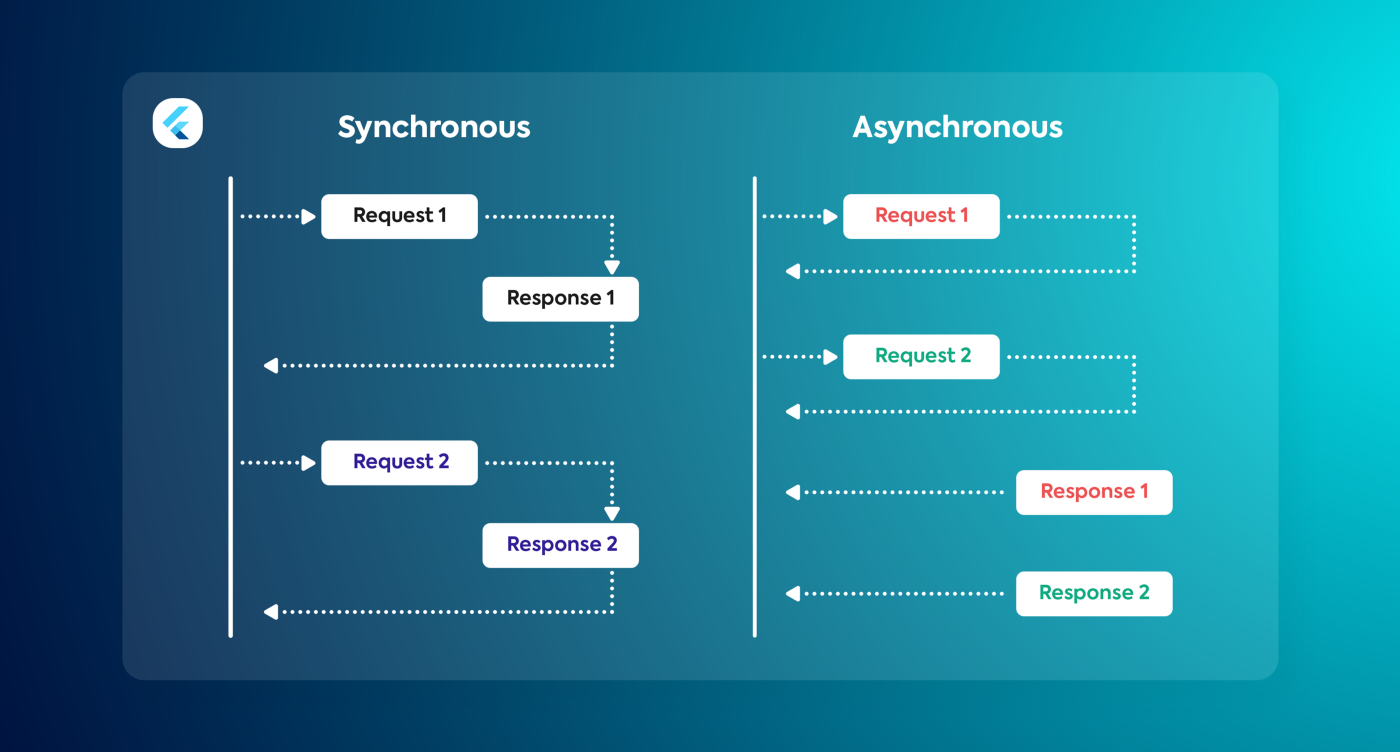 Lập trình bất đồng bộ là kiểu lập trình cho phép bạn thực hiện riêng một công việc nào đó và nó chạy độc lập với thread chính. Khi công việc đó được hoàn thành, nó sẽ thông báo với thread chính của ứng dụng. Trong Flutter, bạn hoàn toàn có thể thực hiện việc lập trình bất đồng bộ để xử lý những tác vụ riêng mà bạn mong muốn mà không gây cản trở đến việc running app.