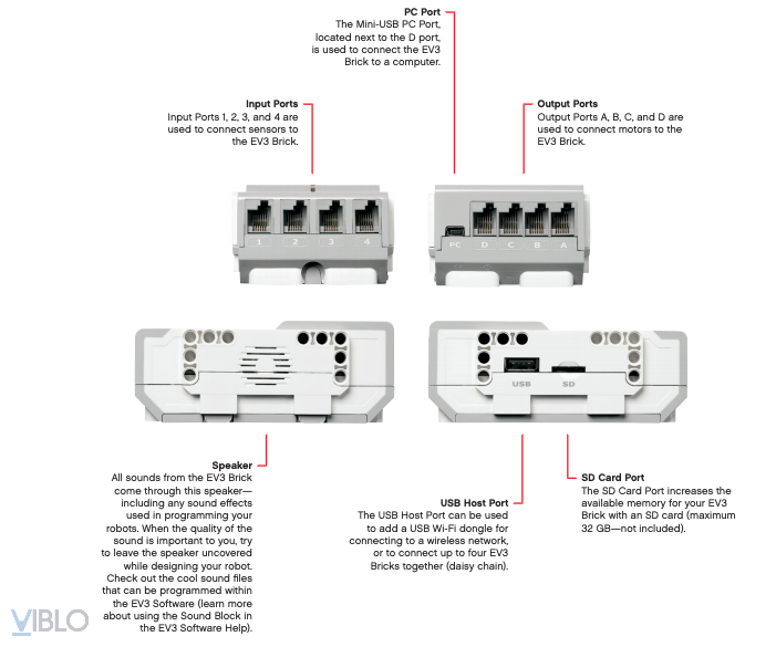 Các bạn nên nhớ đó là với các port là chữ số thì sẽ kết nối giữa bộ nào và các sencors, còn các port là chữ thì sẽ kết nối giữa bộ não và các động cơ.