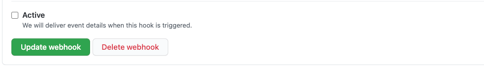 Chỉ cần không check vào ô Active là đã tắt được Webhook.