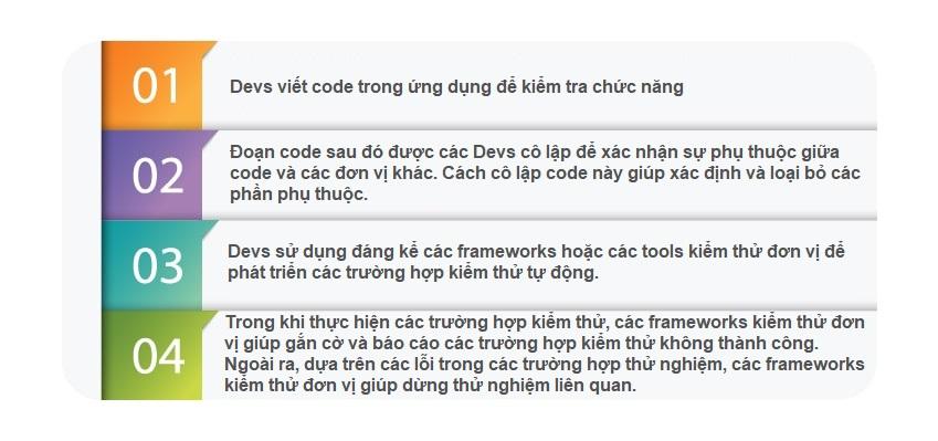Quy trình kiểm thử đơn vị được thực hiện trong 4 giai đoạn:
