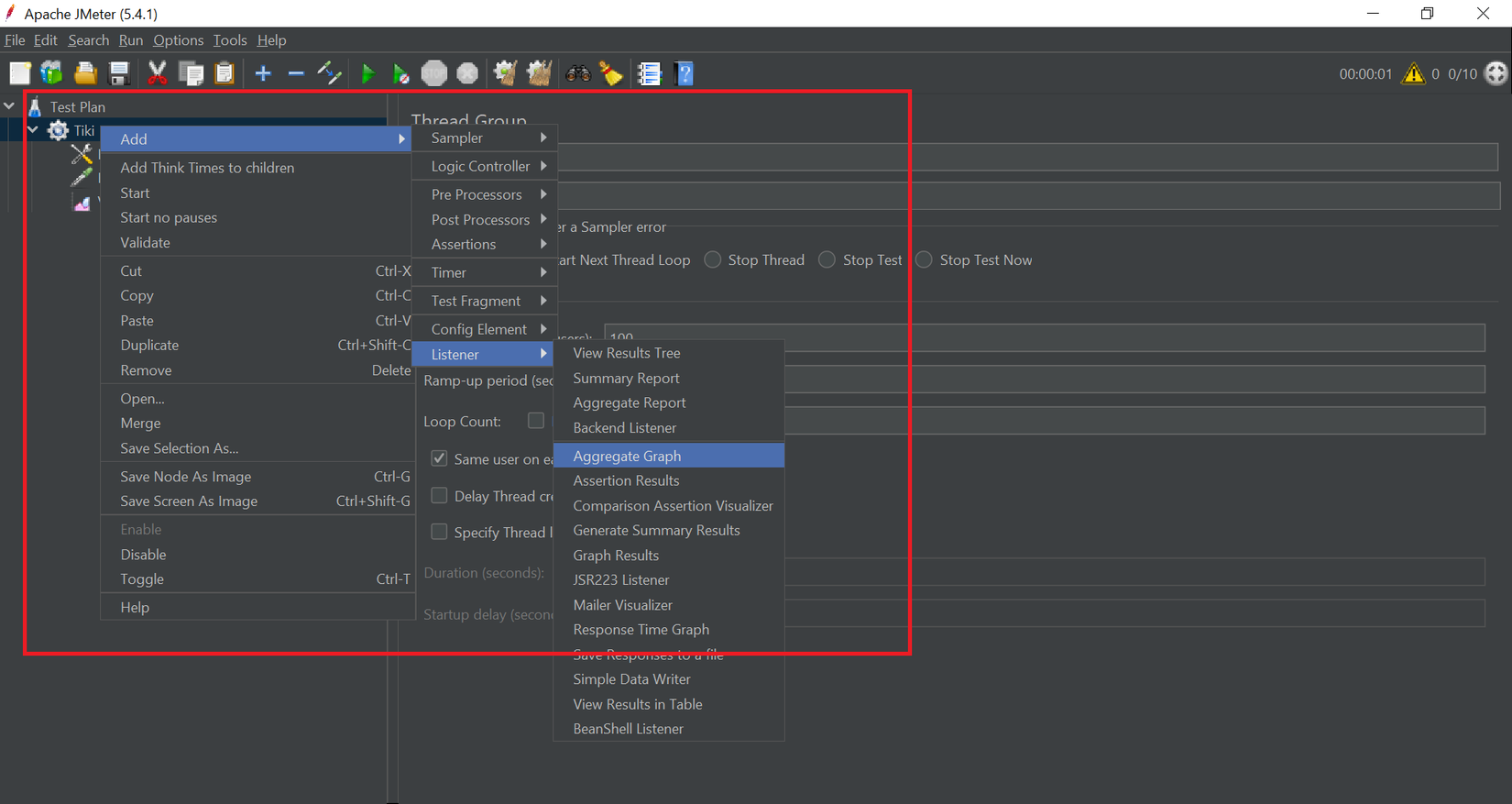 - Click Thread Group >> Add >> Listener >> Graph Results.