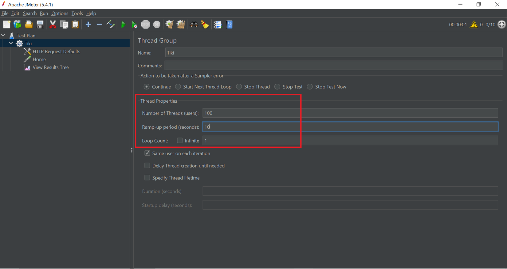 - Tại Thread Group, các thông tin cần quan tâm bao gồm: