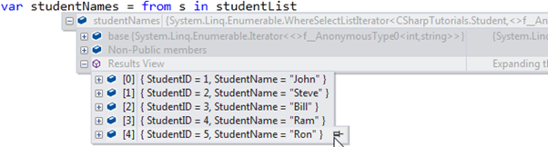 var studentNames = from s in studentList