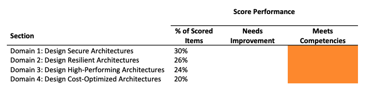 - Đề thi sẽ gồm 4 domain chính: Design Secure Architectures, Design Resilient Architectures, Design High-Performing Architectures, Design Cost-Optimized Architectures