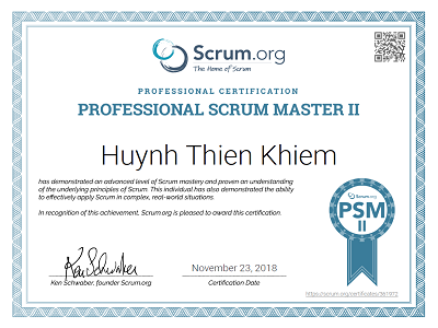 Professional Scrum Master II (PSM II) là chứng chỉ thứ 2 trong 03 cấp độ chứng chỉ Scrum Master được thiết kế bởi Scrum.org. Người có chứng chỉ PSM II sở hữu kiến thức Scrum chuyên sâu và có nhiều kinh nghiệm thực hành Scrum. Giống như các chứng chỉ khác, Scrum.org không yêu cầu bạn tham gia khóa đào tạo trước khi thi và chứng chỉ SPS có giá trị vô thời hạn.