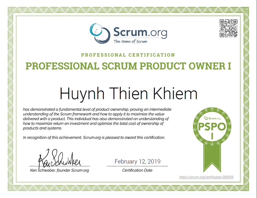 Bài thi PSPO I tương đối khó nếu bạn không luyện tập kỹ. Thách thức lớn nhất đến từ yêu cầu điểm số tối thiểu 85%, một yêu cầu khá cao áp dụng cho tất cả các chứng chỉ của Scrum.org. Nếu đây là đầu tiên bạn thi một chứng chỉ Scrum, bạn cần phải chuẩn bị kỹ lưỡng vì kiến thức Scrum bạn biết có thể không phải là Scrum thực sự !