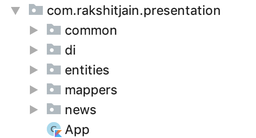 Package DI cung cấp injection cho tất cả các phụ thuộc khi bắt đầu một ứng dụng như liên quan đến mạng, view model, các ca sử dụng... DI trong Android có thể được thực hiện bằng Dagger, Kodein, Koin hoặc chỉ bằng cách sử dụng mẫu thiết kế định vị dịch vụ. Nó chỉ phụ thuộc vào ứng dụng như đối với ứng dụng phức tạp DI có thể khá hữu ích. Tôi chọn Koin chỉ vì nó dễ hiểu và dễ thực hiện hơn Dagger.