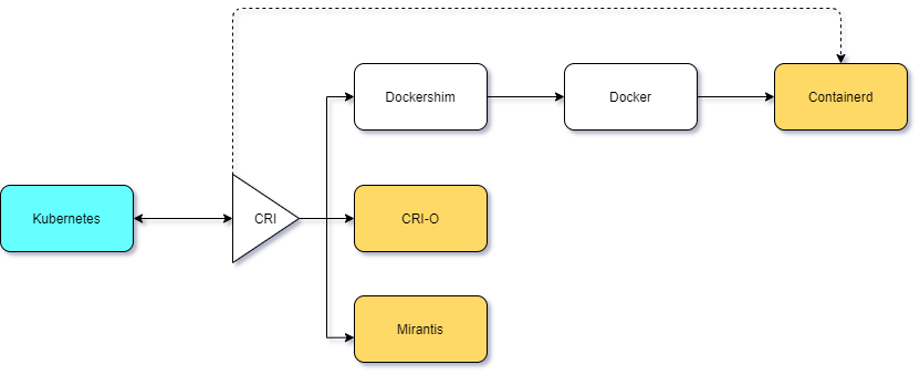 Sự thật là kubernetes có thể hoạt động với tất cả các container runtime, miễn là chúng đáp ứng CRI (Container Runtime Interface), về cơ bản CRI là tập hợp các tiêu chuẩn để Kubernetes có thể giao tiếp với container runtime.