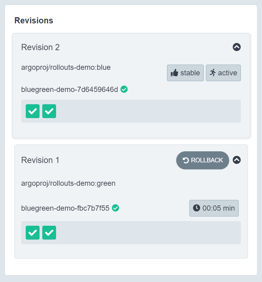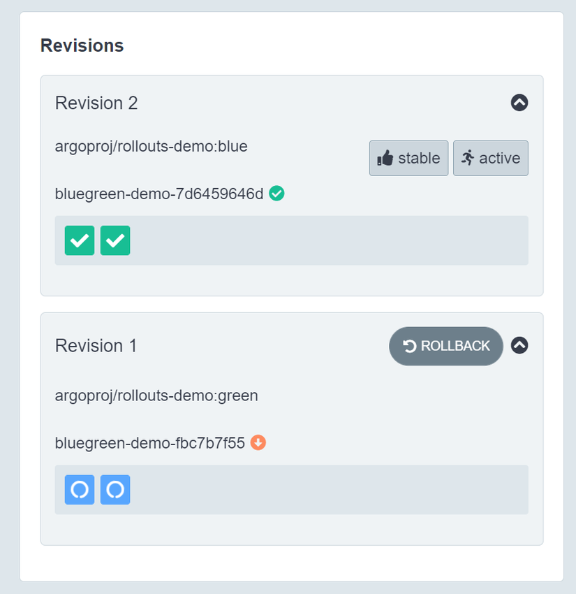 Now, Argo Rollouts update the bluegreen-demo service to point to the new ReplicaSet, after waiting (default 30 seconds), the old ReplicaSet is scaled down.