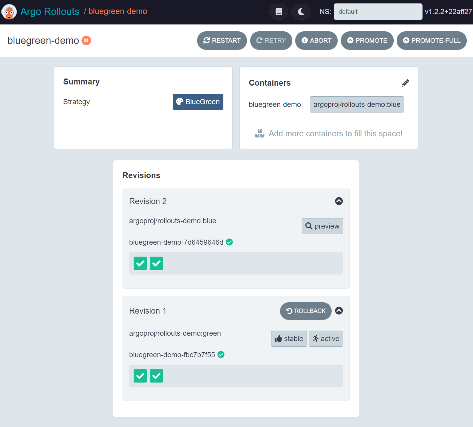 And the bluegreen-demo service does not change.