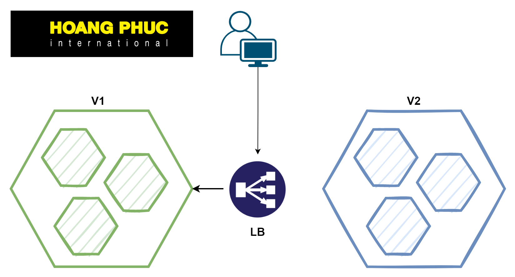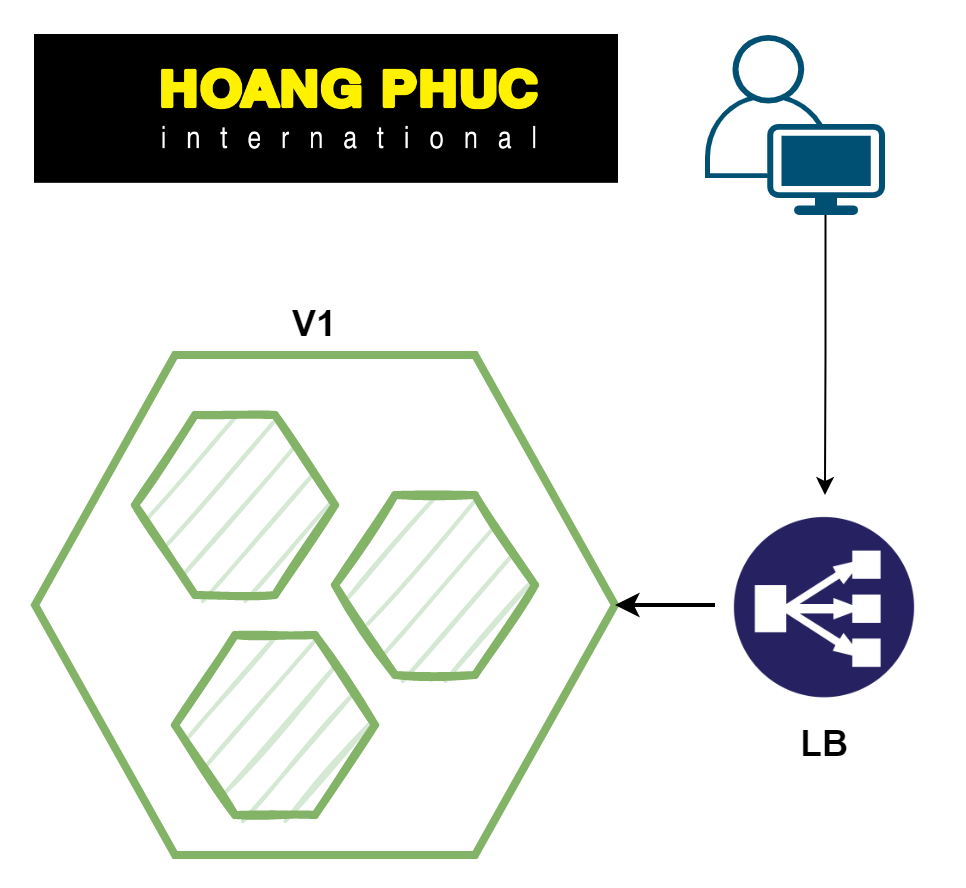 - Gọi phiên bản mà đang đang chạy và nhận traffic từ người dùng của ta là verison 1.