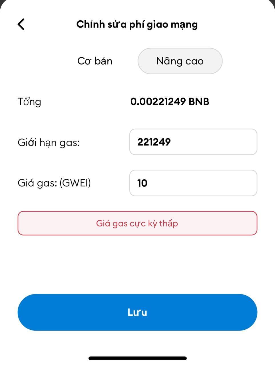 Nhưng BSC sẽ khác với ETH hiện tại, vì hiện tại ETH vẫn đang sử dụng PoC nó rất chậm nên nếu ta để Gas Price thấp thì không biết đến bao giờ transaction được confirm. Trong khi BSC thì dùng PoS vốn dĩ nó đã rất nhanh nên nếu Gas Price có thấp đi chẳng nữa nó vẫn nhanh hơn nhiều ETH. Nên chúng ta có thể thoải mái hạ thấp Gas Price xuống mức rất thấp mình đã thử và thấy tốc độ vẫn rất chi là ok.