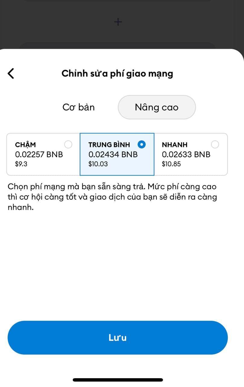 Thì mình khuyên mọi người có thể mạnh dạn vào chỉnh sửa -> nâng cao và hạ xuống 30, 20 hoặc để luôn 10Gwei nó vẫn chạy băng băng